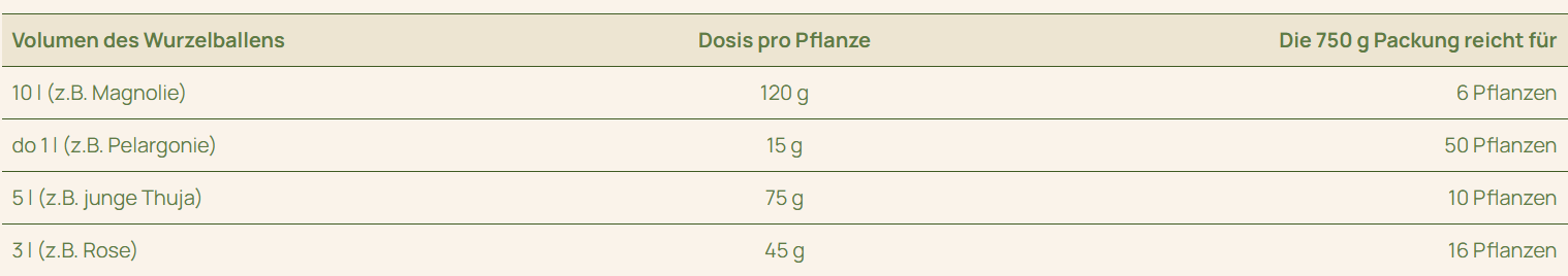 - Bei der Verwendung für Beete geben Sie das Mittel in das Saatloch, damit eine zusammenhängende Schicht entsteht (1 cm) und pflanzen Sie die Pflanze.